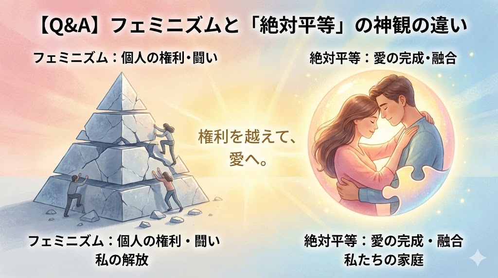 今日は、社会的なフェミニズムと、私たちが目指す「絶対平等の神観」の決定的な違いについて、3つのQ&Aで分かりやすくお答えします。